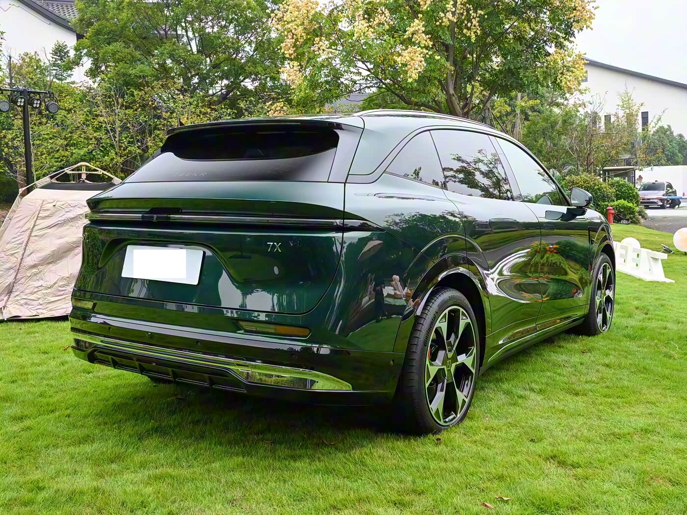 再来看车尾部分,悬浮流光尾灯是极氪 7X 的一大特色。它采用了超红光 LED 技术,色纯度达到 NTSC 120% 广色域标准,晚上点亮时格外醒目,夜间辨识度可提升明显,能让后车更容易注意到。灯组内部的 “极氪” LOGO 采用立体浮雕工艺打造,点亮时会有渐进式呼吸灯光效果,精致感十足。